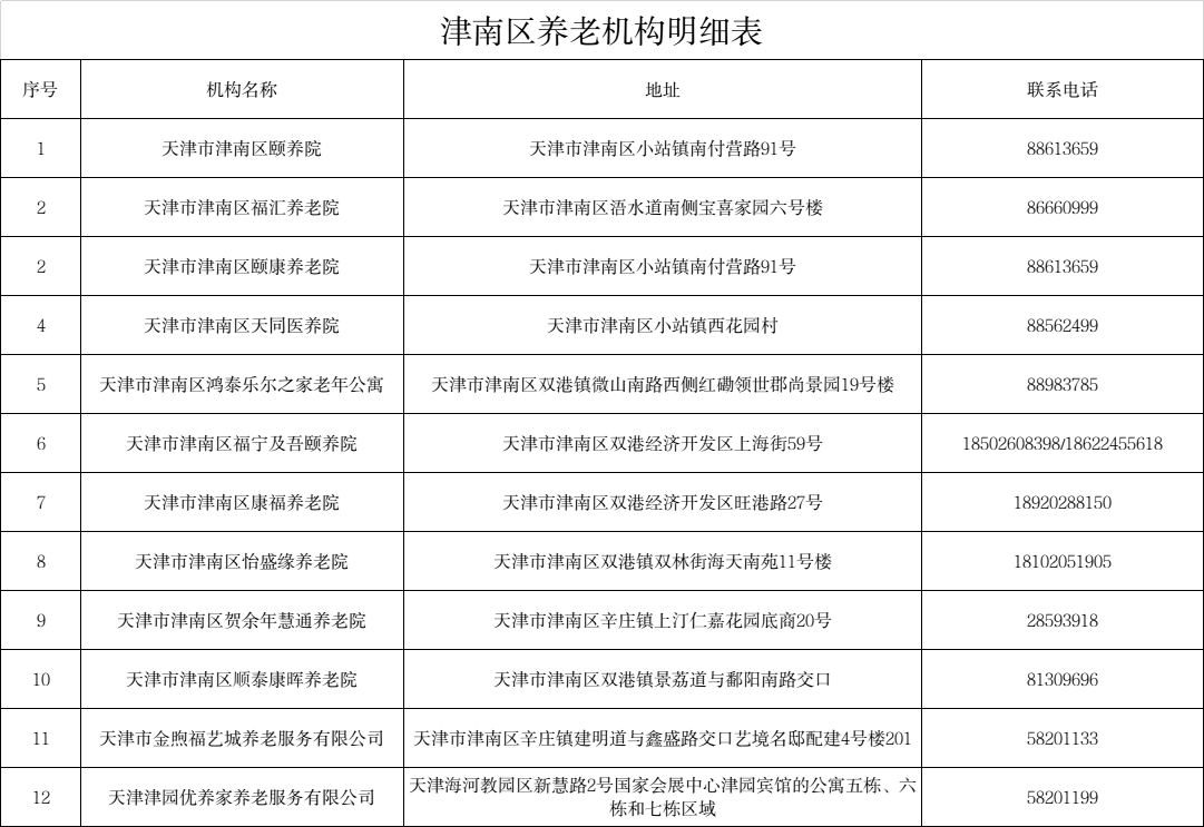 在线赌场 养老机构明细表