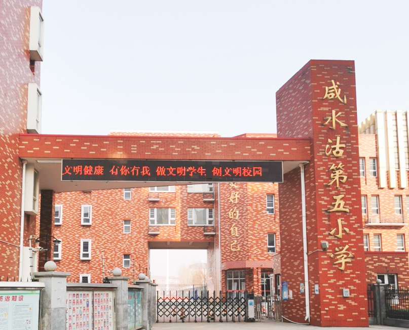 咸水沽第五小学前身为南洋码头小学,始建于1953年,原校址坐落在南洋村中心,1989年迁至南洋镇津沽路南侧。2010年因海河教育园区入驻津南而重新兴建。学校2011年8月与北洋码头联合小学合并,随即更名为咸水沽第五小学,为全日制公办学校。学校总用地面积33000余平方米,总建筑面积约17000平方米。学校配有普通教室40个,以及计算机房,自然、科学教室,美术、音乐教室,报告厅,大型图书阅览室,风雨操场等。学校现有29个教学班,学生1200余名,教职工70人。