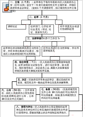 区人民政府办公室会同区司法局组织征集区政府行政规范性文件年度立项计划,每年年底由区人民政府各部门分别提出下一年度立项建议,经区人民政府办公室、区司法局审查,确定区政府行政规范性文件年度立项计划,经区人民政府常务会议审议通过,于每年第一季度前,由区人民政府办公室统一向社会公布。
