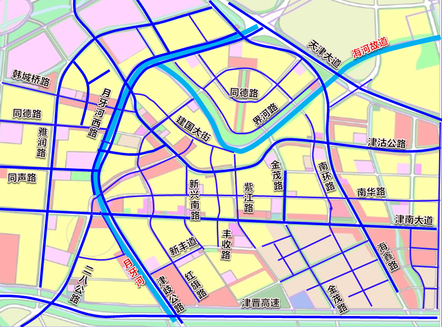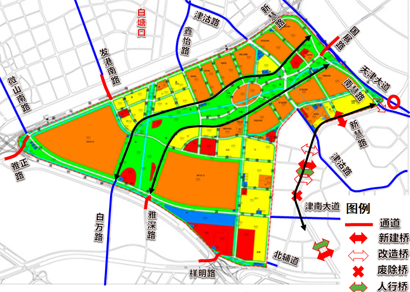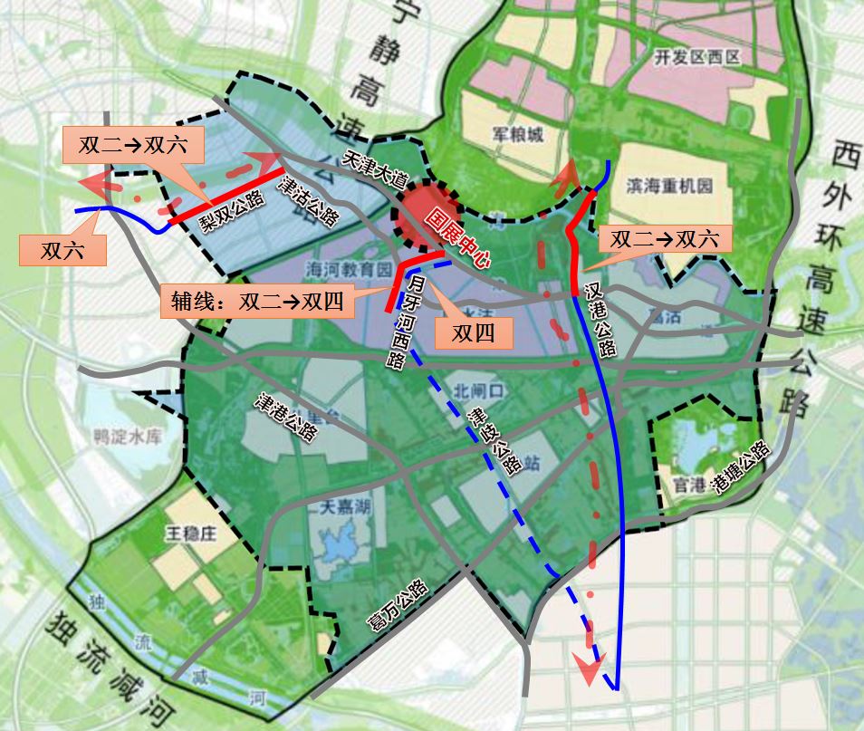 ②规划梳理海河教育园区与咸水沽核心区间的跨河通道,包括新建及改建现状跨河。
