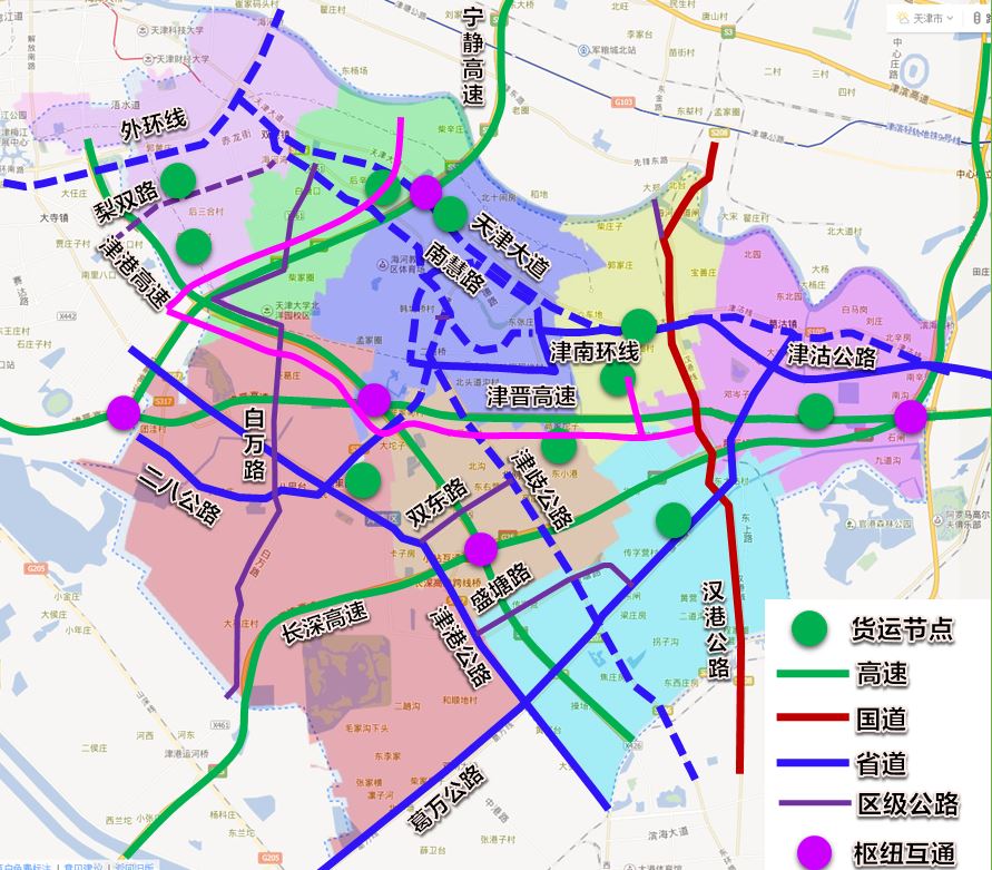 ③打通货运通道方面。规划建设机场大道连接线(新家园路-津沽公路)等项目。