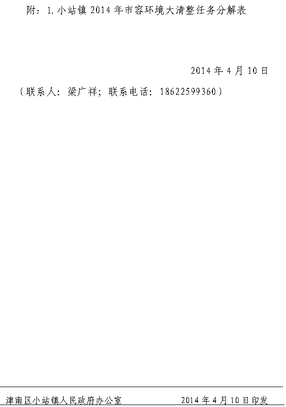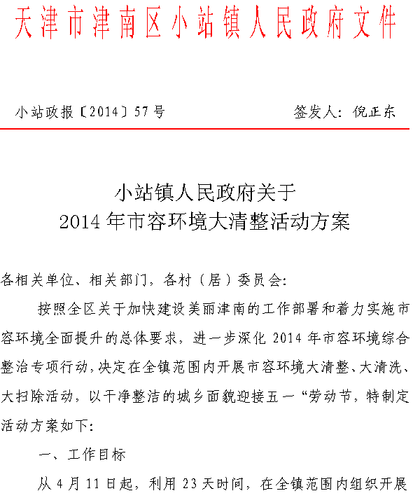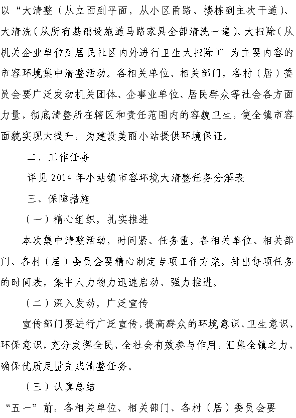 小站镇人民政府关于2014年市容环境大清整活动方案